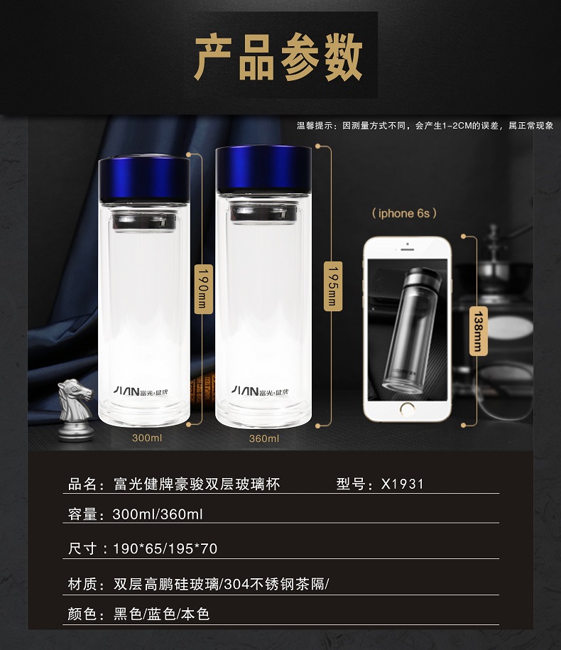 名稱:富光健牌豪駿雙層玻璃杯360ml