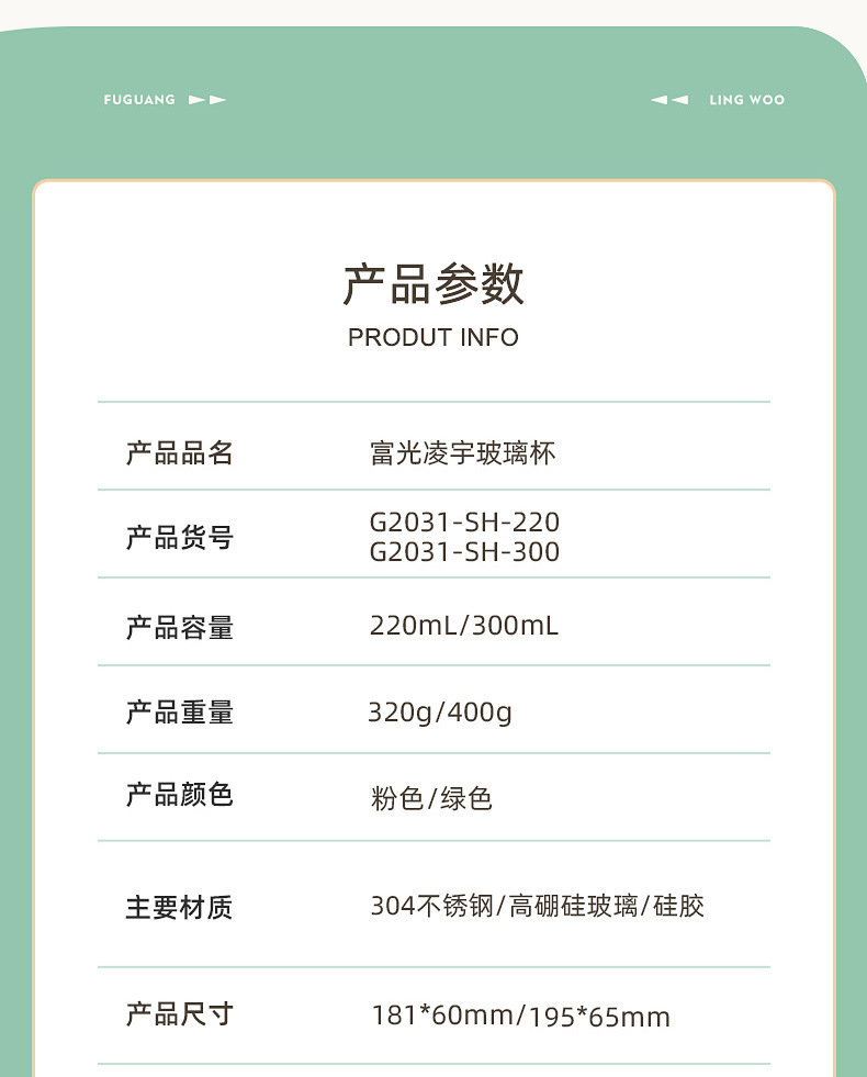 名稱:富光凌宇雙層玻璃杯